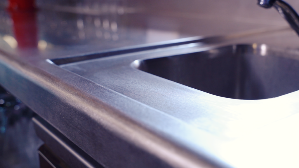 - Estetyka wykonania – blaty wibrowane i szafki z blachy polerowanej