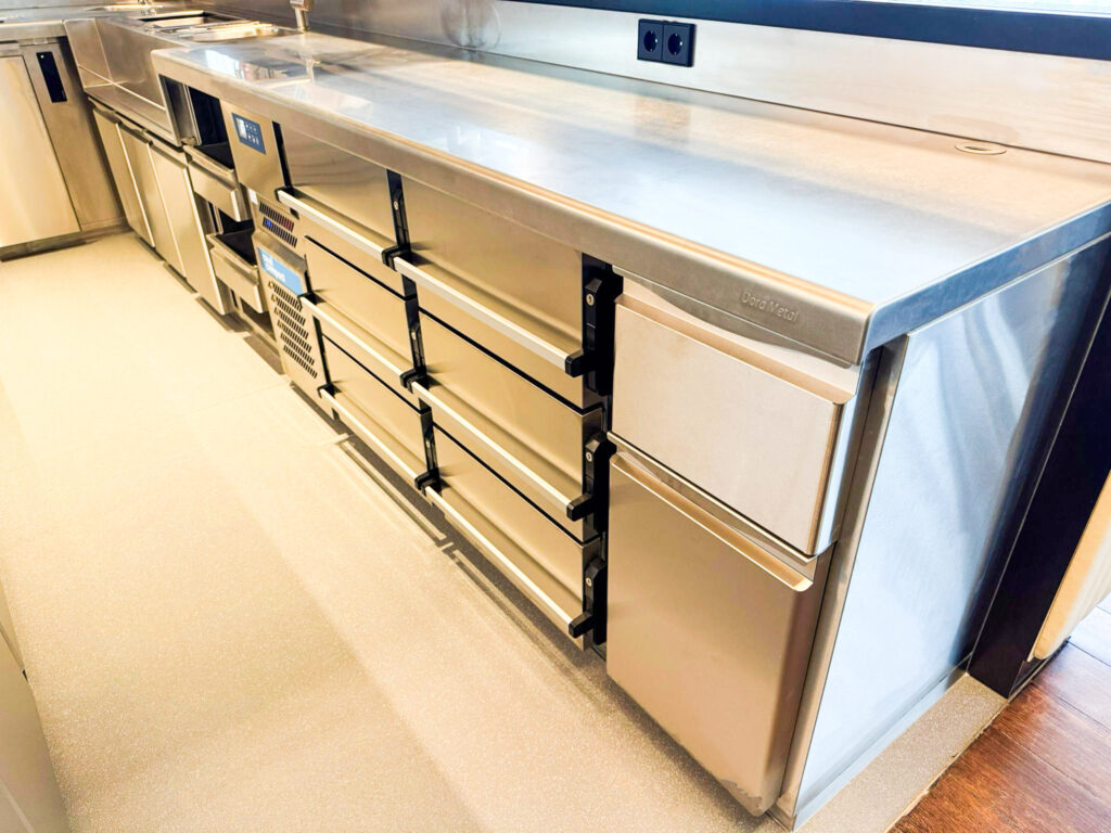- Logiczne strefy pracy – chłodzenie, przechowywanie, wydawanie